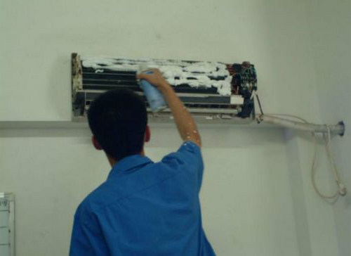 | 大庆市空调维修师傅给大庆市用户上门维修清洗空调。 |